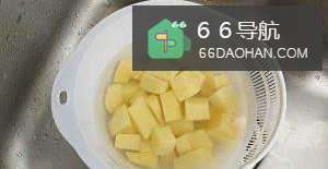 5土豆去皮洗净,切成小块,用冷水浸泡备用。