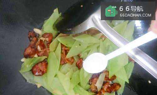 5放入蒜末煸香后倒入莴笋片一同翻炒。