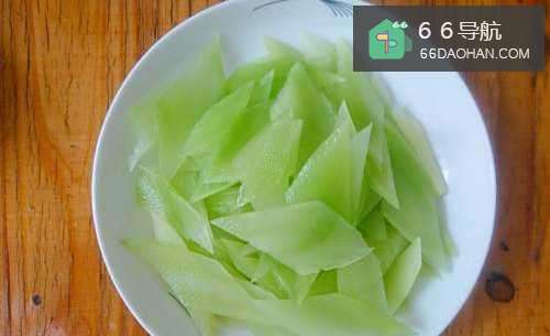 莴笋择掉叶子,削皮洗净切成菱形片。