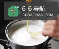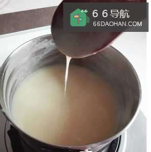 注意不能煮得太稀,也不能煮得稠,差不多煮到用筷子或汤勺插入锅中,随手提起,能够拉出一股流线就可以了。