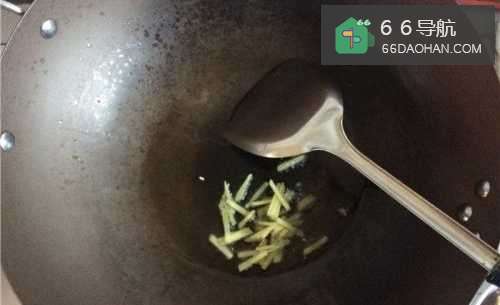 3锅里放入油,烧至七八分热的时候加入生姜丝翻炒。