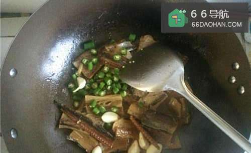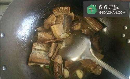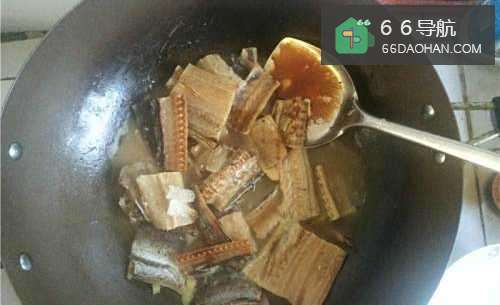 4加入泡好的鳗鱼干段翻炒,加入适量的白酒,注意鳗鱼干泡好后一定要多洗几遍。