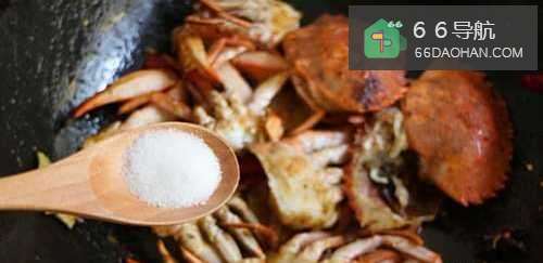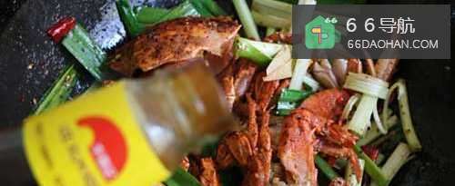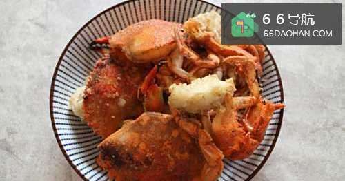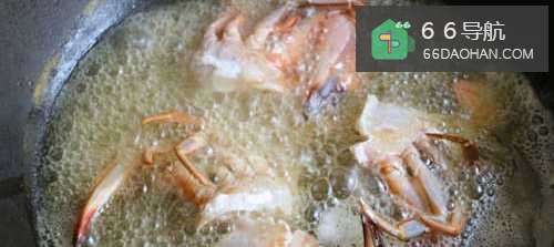 8油锅加入适量植物油,烧到7成热左右,把沾过淀粉的蟹块下油锅炸至蟹身变红;