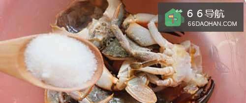 5重新清洗蟹身干净,装入大碗,加入适量盐,白酒,黑胡椒粉腌半小时;