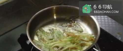 2然后,另起锅倒油,放入已经切好的葱丝,用小火慢慢煸成焦黄色;