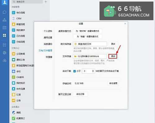 3在“文件管理”界面,选择文件存储项,点击【更改】;