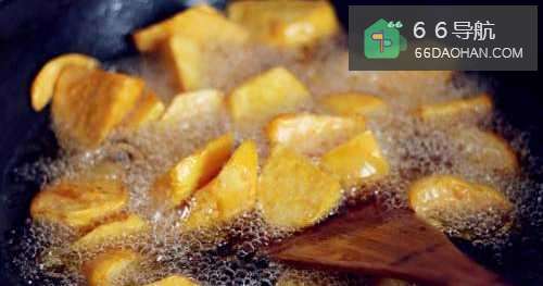 3锅里烧热油,五成热的时候放地瓜,可以先放一块试一下,冒这样的小泡就可以了。