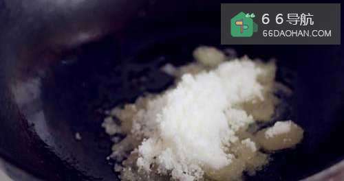6把锅里的油倒出去留一点底油,放入白糖。