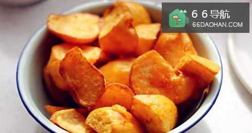 5炸到地瓜块表面形成硬皮,里面变软,我切这个块大小炸个八分熟就可以盛出控油备用。