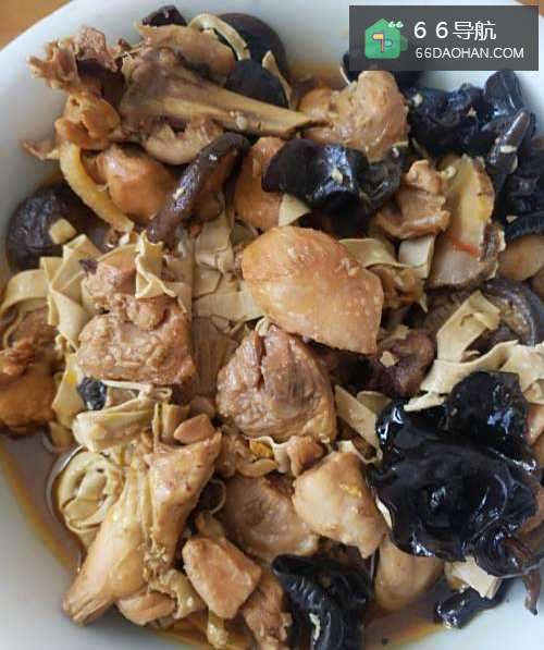 家常口味的黄焖鸡就做好了,出锅装盘,口味一点不比店里的差哦,有兴趣的朋友们试着做做看吧。