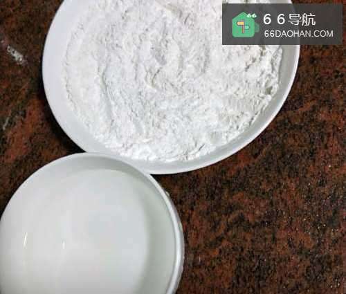 3然后把淀粉倒进碗里,再准备一碗水,把它和淀粉按照比例一比一混合均匀搅拌一下,