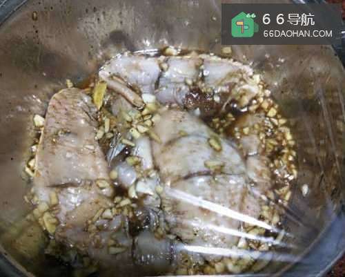 2接下来开始腌制鸡翅,把鸡翅倒进盆里,倒入一勺料酒,一勺蚝油,适量的盐,两勺生抽,放点姜片和蒜瓣泥,然后用保鲜膜把它盖紧再放进冰箱冷藏一个半小时左右即可。