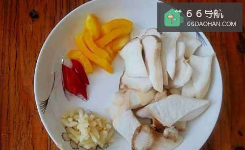 2杏鲍菇洗净切菱形兼吩片,蒜瓣拍扁剁碎。
