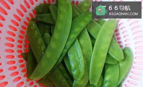 1荷兰豆择去老筋,在流水下冲洗干净,沥干水份备用。