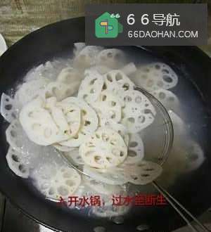 水开后,倒入莲菜片,水开后一两分钟即可。