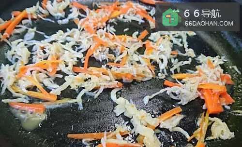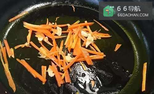 2先用平底锅爆炒蒜末,再下红萝卜拌炒