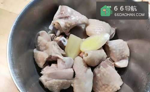 3鸡腿连同姜捞起后用冷水洗净