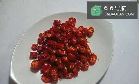 4美人椒切小粒,葱、青蒜苗和青椒切丝备用。