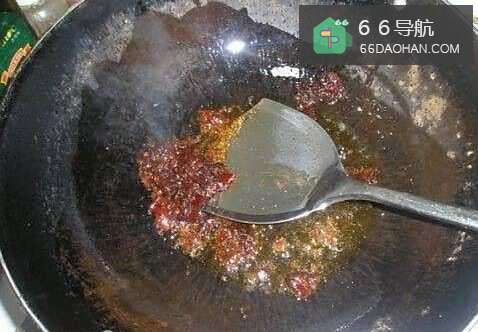 5锅内加入食用油,放入豆瓣酱翻炒出香味。