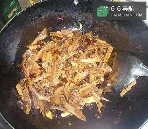 6放入笋干段翻炒,并加入少许水煮一会,让调味充分浸入笋干内。