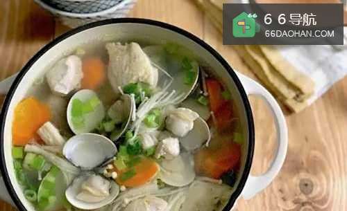 5最后下蛤蜊及金针菇,煮滚至蛤蜊全开,即可关火撒入葱花