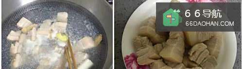 先将五花肉进行焯血沫,焯掉血沫后挨个洗净装盘备用。
