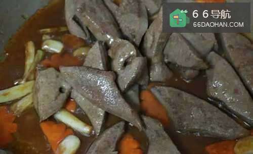 5再放入猪肝,翻炒至猪肝均匀沾附上酱汁即可。