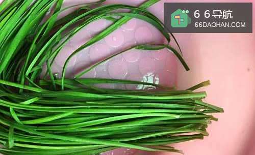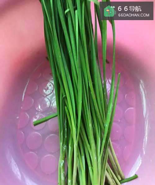 3把洗好的韭菜晾干水,然后切碎。