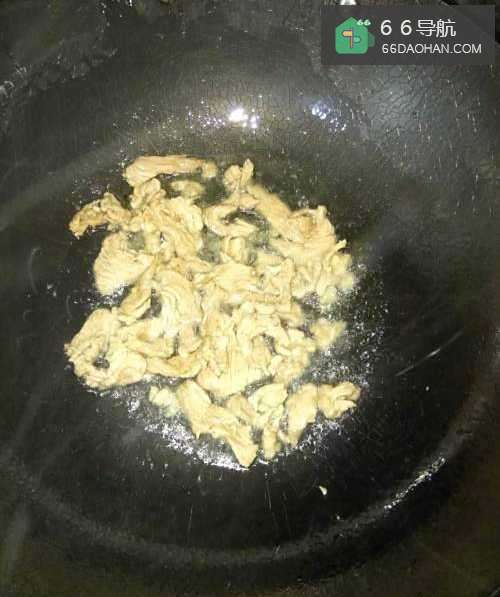 4开火,加入适量的食用油,将瘦肉下入锅里炒熟、炒至肉变白色;