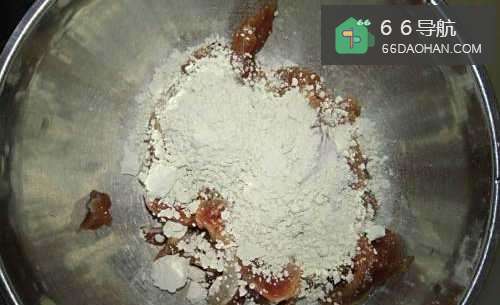 2取适量的瘦肉,清洗干净,切成小片,放入碗里,加入适量的淀粉,抓匀;