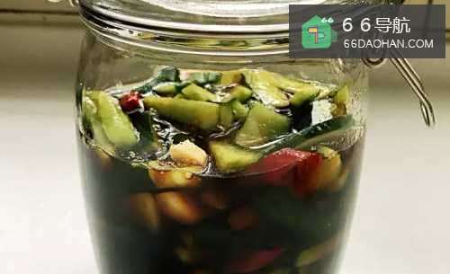 5黄瓜放在洗净的玻璃瓶,酱汁放凉后倒进瓶子里,腌3天左右可以食用