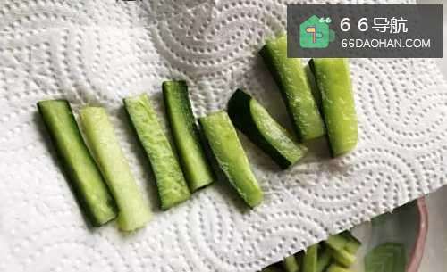 3把用盐腌过的黄瓜用纯净水冲净,用厨房纸擦干后放入冰箱20分钟