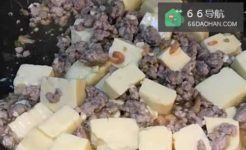 7略为翻动豆腐和绞肉,使芡汁能均匀裹附上,起锅撒上葱花即可