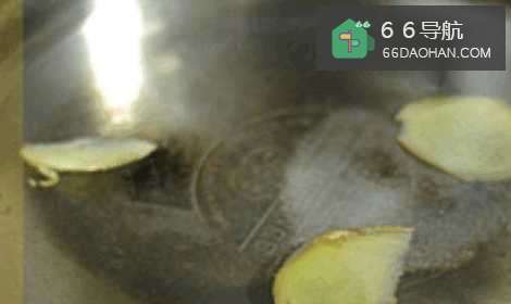 2锅中放水,然后放入姜片、盐5克。