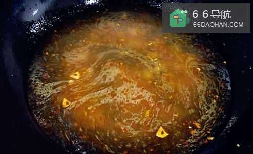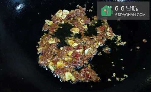 5另起锅倒油,油热拒酱后放入姜蒜末爆香,放入豆瓣酱小火炒香,炒出红油色,这里推荐使用红油豆瓣酱,颜色红亮一些。