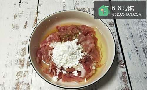 3切好的肉片中加盐、料酒、胡椒粉、淀粉和蛋清抓匀腌制一会