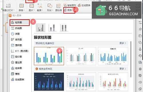 2点击【插入】—【图表】,选择【柱形图】—【簇状柱形图】,点击【插入】;
