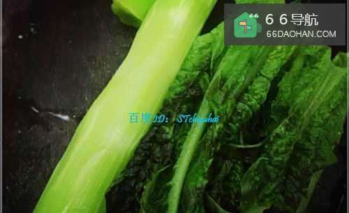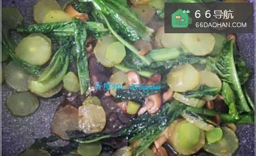 6莴笋茎炒制六七分熟后加入莴笋叶,混合翻炒一阵。