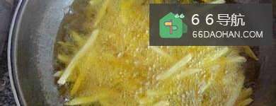 5将油锅烧热,就可以将冷冻之后的土豆条放入油锅中炸了。