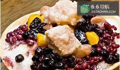 店里供应雪花冰、刀削冰和果汁、水果拼盘,其中以蜜豆冰最受欢迎,满盘刨冰配上丰盛的水果、汤圆、蜜饯、红豆和花生等配料,再淋上特制糖水,光看就令人食指大动。