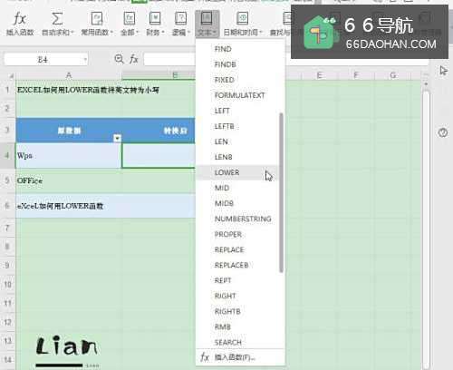 3在“文本”函数列表中,选择函数【LOWER】;